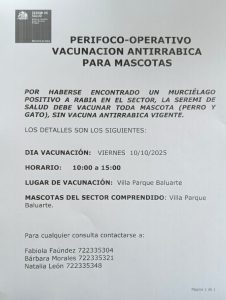 La seremi de Salud, Dra. Carolina Torres, señaló que “ya se está haciendo la coordinación con los equipos municipales para que, en conjunto con el equipo de zoonosis de la seremi, podamos cumplir con el perifoco y aplicar las vacunas necesarias”. Además, durante la jornada se realizará educación sanitaria sobre prevención y manejo responsable de mascotas.